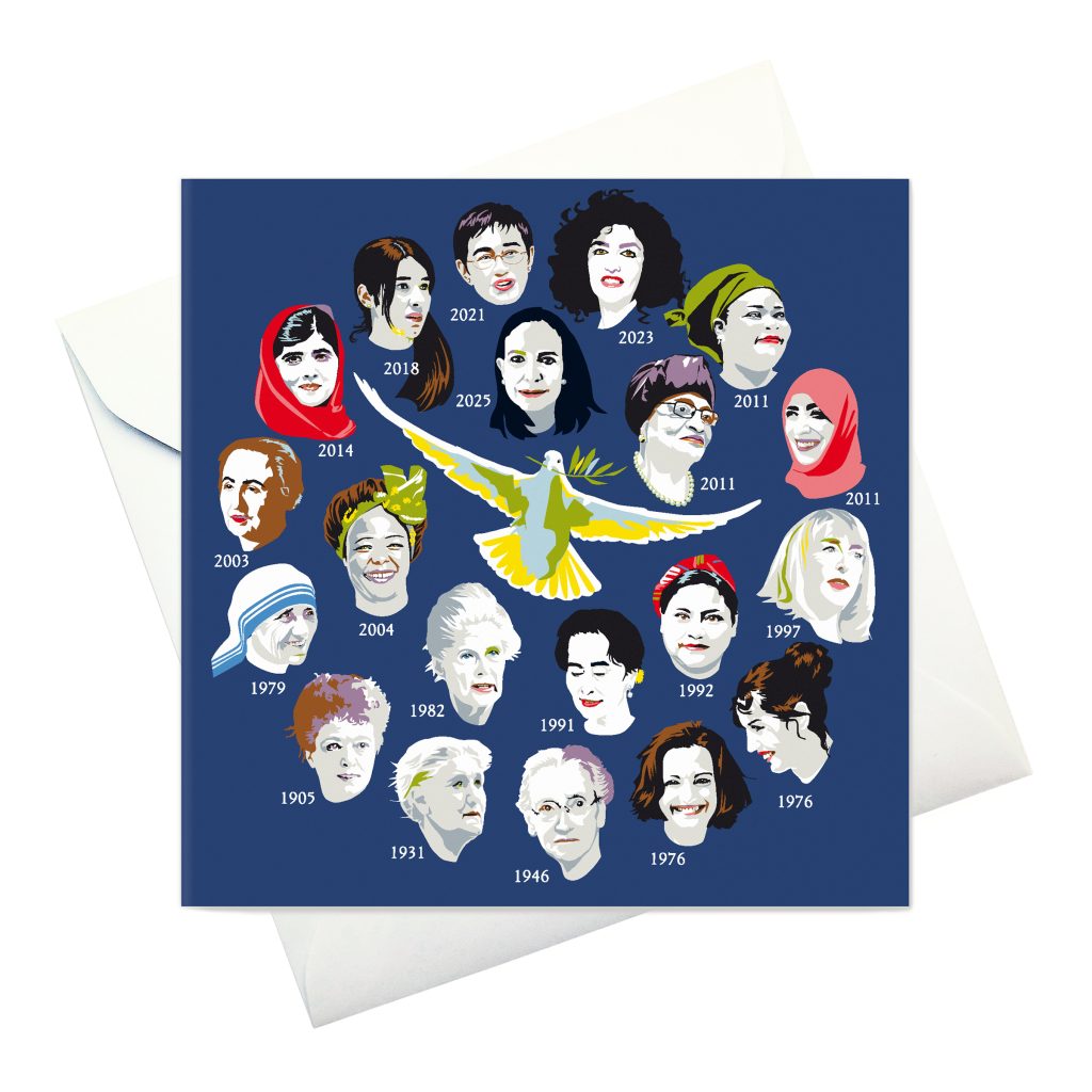 kort m kuvert: “Kvinnorna som erhållit NOBELS FREDSPRIS 1901-2025”